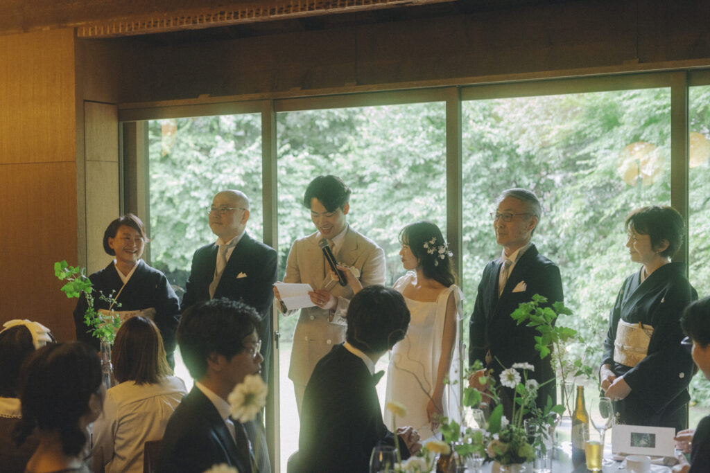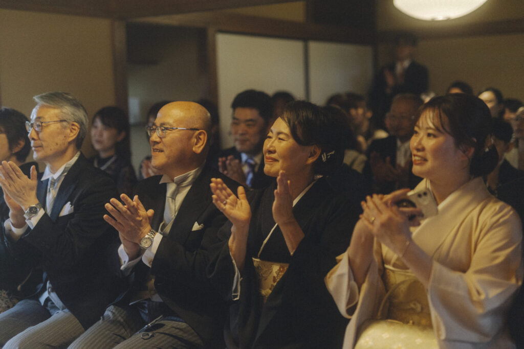 夕食では、久々にご両家が集まり、和やかであたたかい空気がゆっくりと広がっていきました。ご両家のお家MAYAにおふたりが大切にされてきた人たちが少しずつ集まりはじめ、これから始まる特別な3日間への期待や緊張や楽しみ色んな想いがじんわりと高まる1日目となりました。