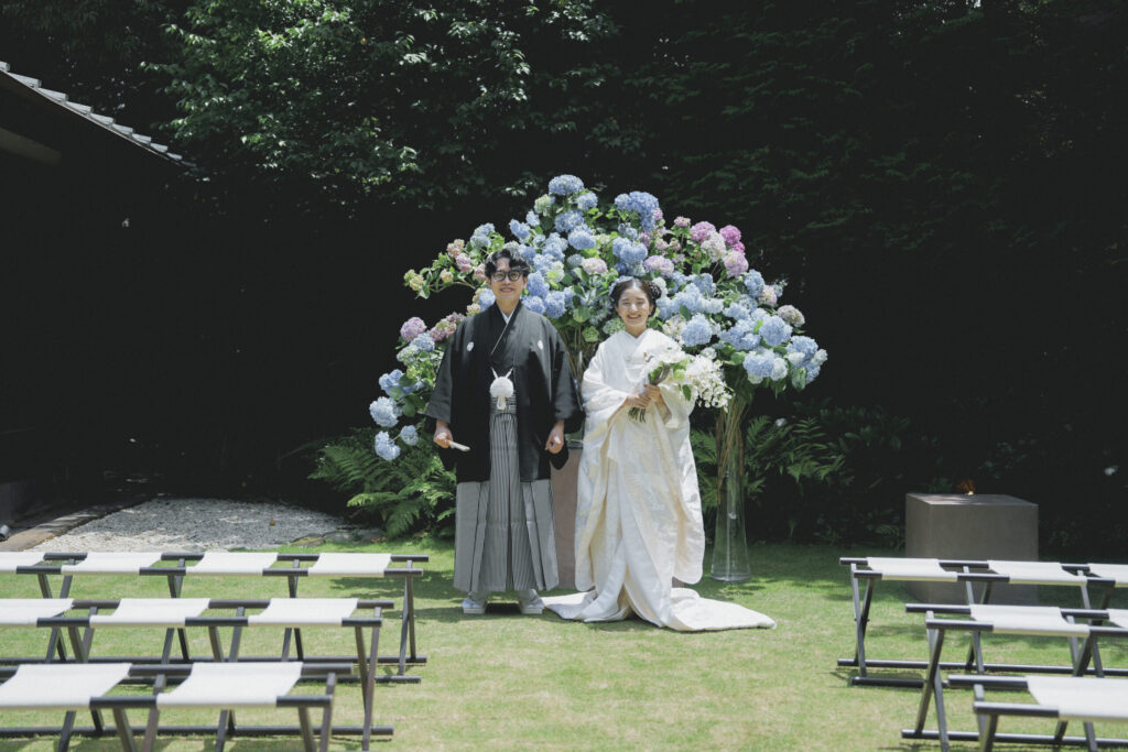 夏の始まりを感じるような、とても暑い一日でしたが、MAYAを選ばれた際に天気をとても気にされていたおふたりにとっては、願っていたとおりの晴天に。晴れやかな笑顔がとても印象的でした。