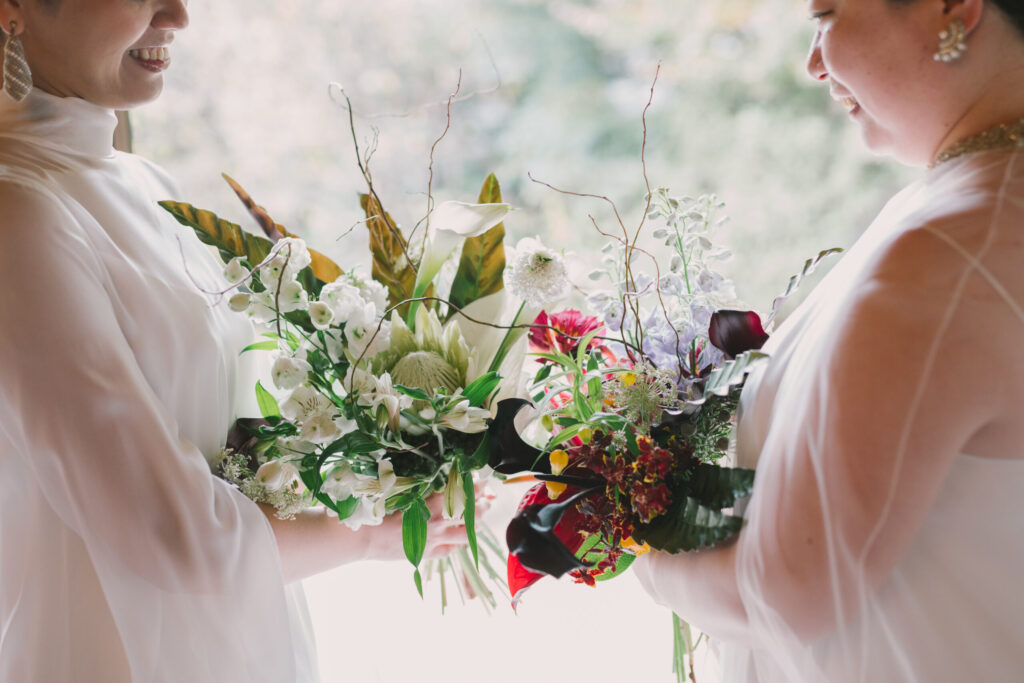 色ちがいのお揃いのブーケに綺麗なドレスを纏い、それぞれの親御様とお歩き頂きます。