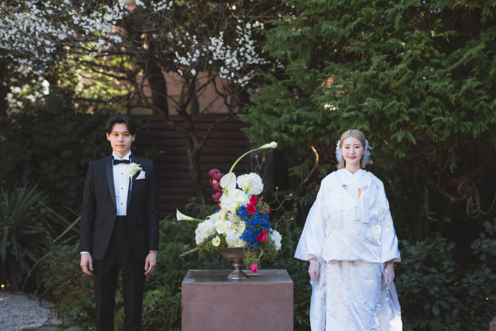 端正で落ち着いた雰囲気を纏い、言葉を交わせばとても穏やかなお人柄が伝わってくる新郎様。凛とした美しさと、自分らしさを大切にする芯の強さが魅力の新婦様。