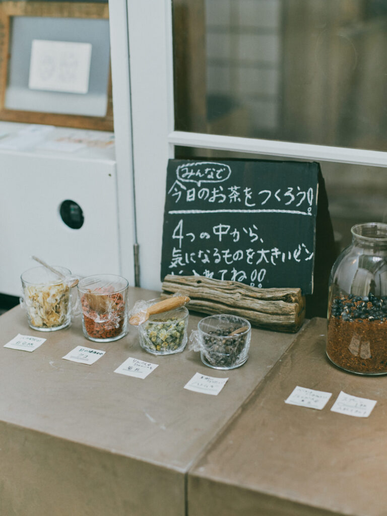 受付時に、アールグレイや黒豆茶など好きな素材を選び、おふたりのためだけのオリジナルブレンドをゲスト全員で作成。