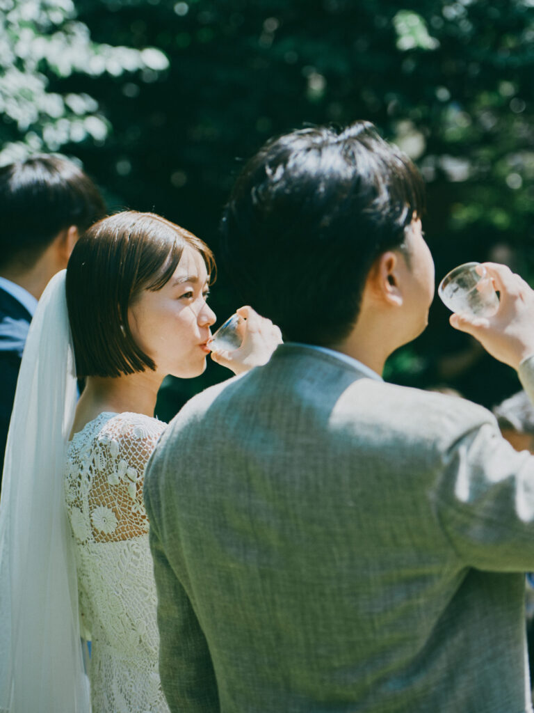 挙式の中で、ご新郎のお兄様とご新婦の弟様からそのお茶を新郎新婦の元へお持ちいただき、注いでいただきました。